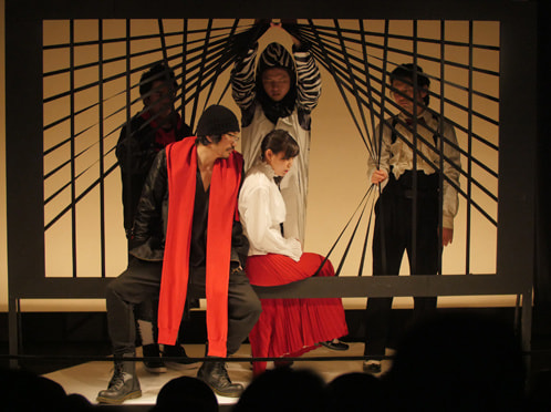 DIVEプロデュース公演『メイド・イン・ジャパン』は、関西以外で活躍している演劇人の方に大阪へ来て頂き、関西の演劇人と一緒に稽古し、地域を越えた演劇人同士が知り合うことで、各地の交流が益々盛んになることを願って企画しました。 制作として各地の演劇人と交流がある尾崎商店さんにご協力頂き、日本各地から川上珠来(オイスターズ/愛知県)、西藤将人(劇団ハタチ族/島根県)、清水友陽(劇団清水企画/北海道)、野々下孝(仙台シアターラボ/宮城県)、ムーベ(ワタナベエンターテインメント九州事業本部/福岡県)の5名をお迎えし、ご出演頂きました。 脚本を土橋淳志(A級MissingLink)さんが担当し、大阪・日本橋のメイド喫茶から始まり、柳田国男『海上の道』から着想を得て、物語の船を南へと進め、最後は沖縄へ漂着しました。セリフに対話はほとんどなく、モノローグを中心とした「語りの劇」として上演されました。(笠井友仁)