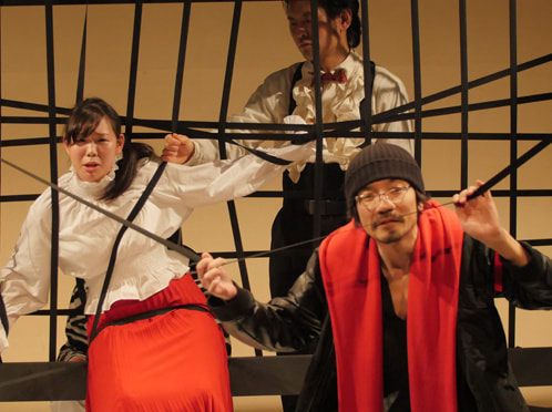 DIVEプロデュース公演『メイド・イン・ジャパン』は、関西以外で活躍している演劇人の方に大阪へ来て頂き、関西の演劇人と一緒に稽古し、地域を越えた演劇人同士が知り合うことで、各地の交流が益々盛んになることを願って企画しました。 制作として各地の演劇人と交流がある尾崎商店さんにご協力頂き、日本各地から川上珠来(オイスターズ/愛知県)、西藤将人(劇団ハタチ族/島根県)、清水友陽(劇団清水企画/北海道)、野々下孝(仙台シアターラボ/宮城県)、ムーベ(ワタナベエンターテインメント九州事業本部/福岡県)の5名をお迎えし、ご出演頂きました。 脚本を土橋淳志(A級MissingLink)さんが担当し、大阪・日本橋のメイド喫茶から始まり、柳田国男『海上の道』から着想を得て、物語の船を南へと進め、最後は沖縄へ漂着しました。セリフに対話はほとんどなく、モノローグを中心とした「語りの劇」として上演されました。(笠井友仁)