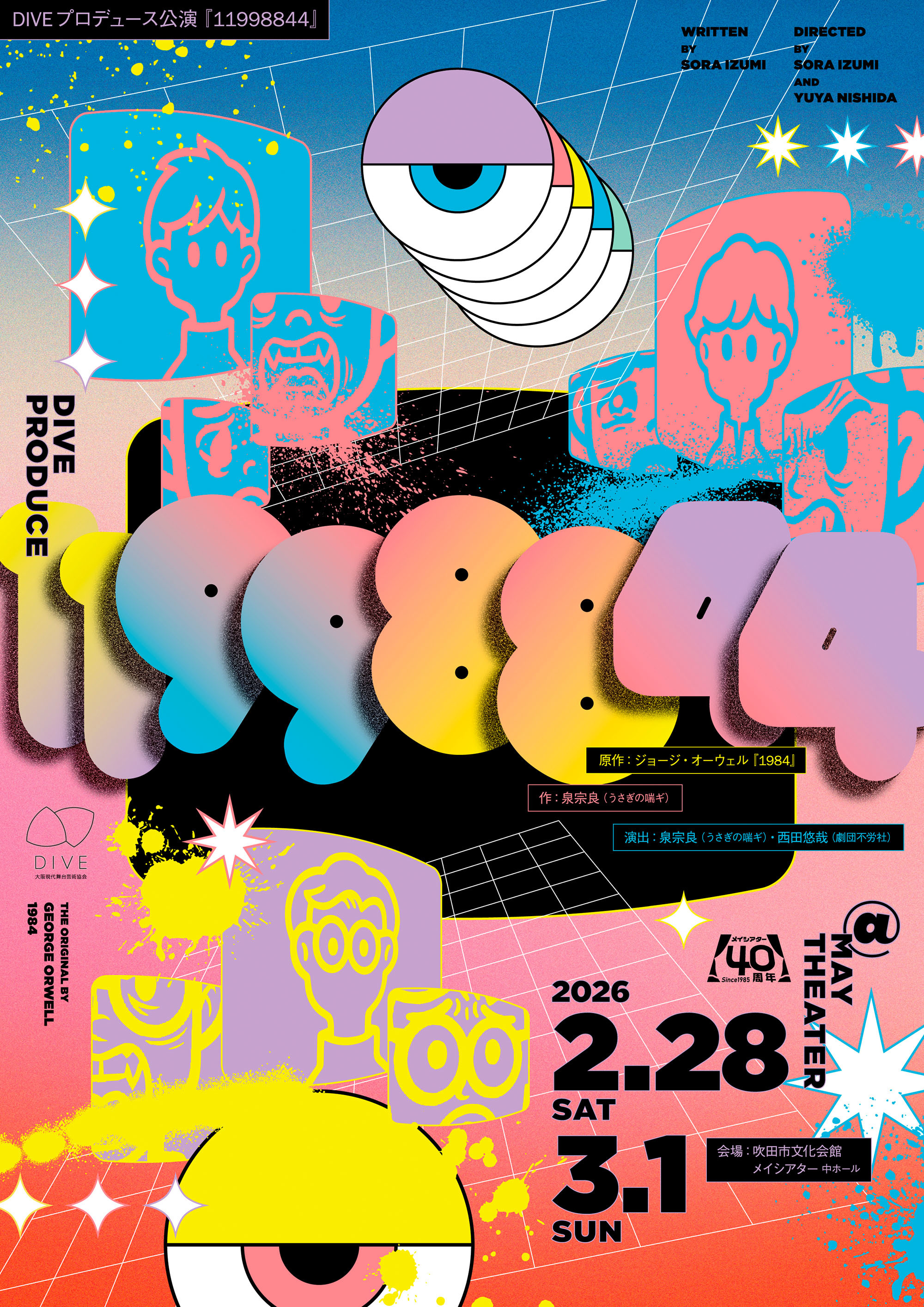 異なる劇団で活躍する演劇作家の協働作品をプロデュースして大阪の現代演劇の魅力を伝えてきたNPO法人大阪現代舞台芸術協会(DIVE)。今回は、ディストピア小説の最高傑作ともいわれているジョージ・オーウェルの小説『1984年』を、うさぎの喘ギの泉宗良が現代の視点から改作し、劇団不労社の西田悠哉と共同で演出します。関西の若手演劇作家として注目を集める2人のタッグをお見逃しなく。